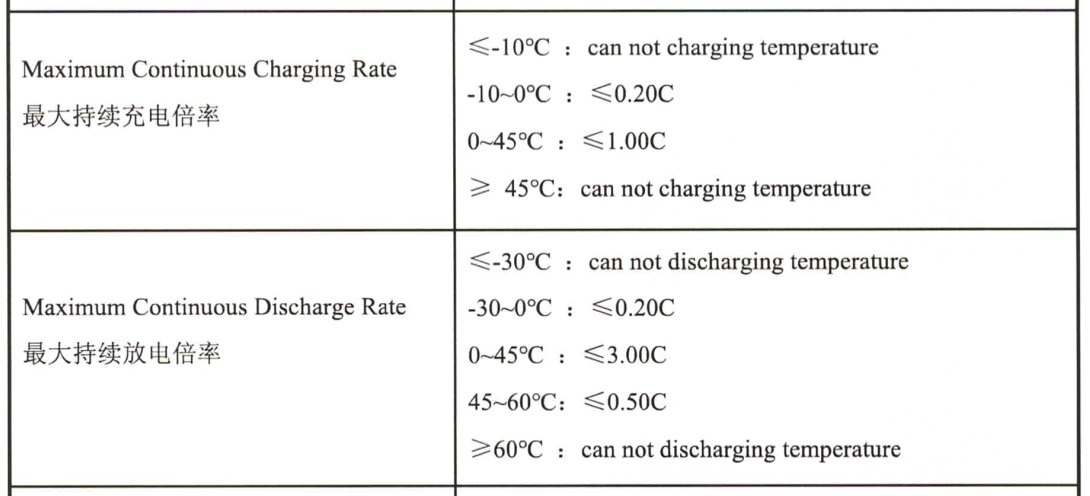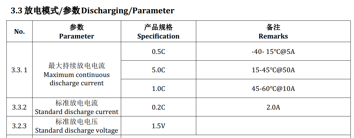 Alla speksit muutamalle erikokoiselle kennolle (3,5/10/18 Ah):