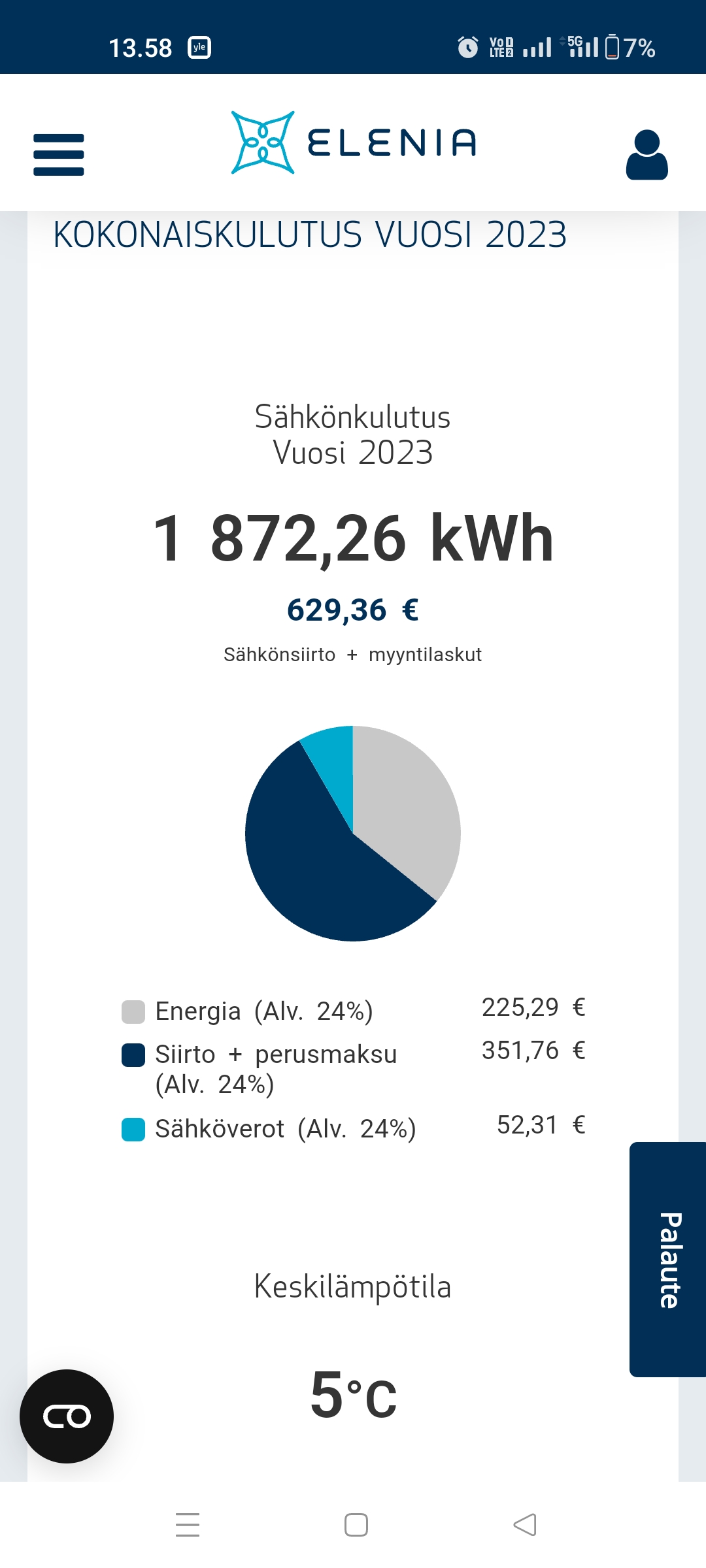 Tein pienen laskuharjoituksen vuoden 2023 sähkönkulutuksellani.