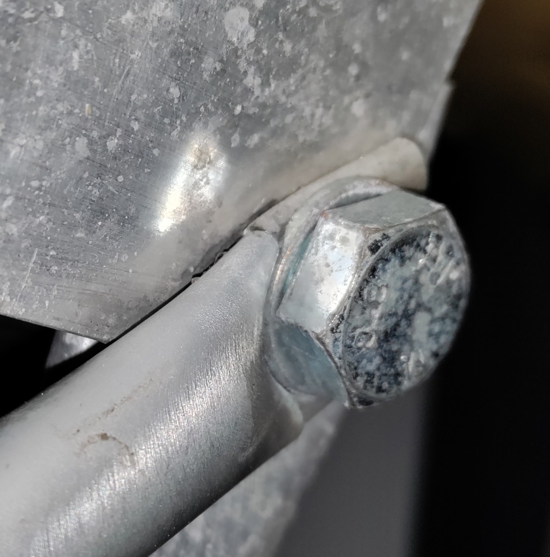 Korjaa litistämällä tarakkaputki uudelleen ja poraamalla se kiinni tuon kulmalapun yläkulmaan M6 ruuvilla kiinni. M8 ruuvi on noin ohuelle pultille liian paksu. Ja muutenkin voimat tasaantuvat paremmin, kun eivät ole saman pultin alla molemmat putket. Litistä vähän pidemmältä matkalta, niin ei momentit välity niin pahasti liitokseen.