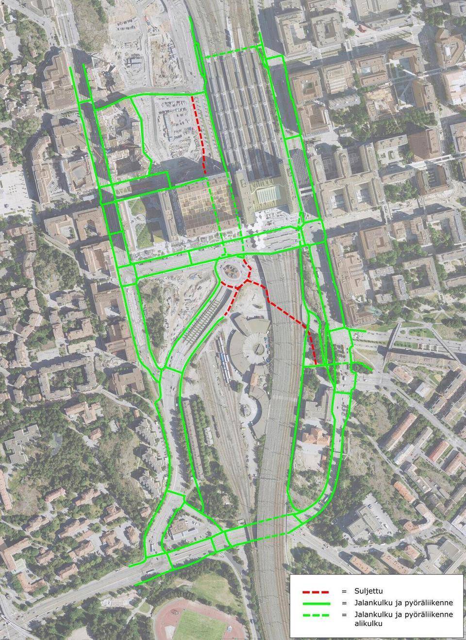 Edit: Keskimmäinen reittiä on noista ehdottomasti sujuvin. Pasilan aseman linjalla (oikea linja) on taas vilinää.