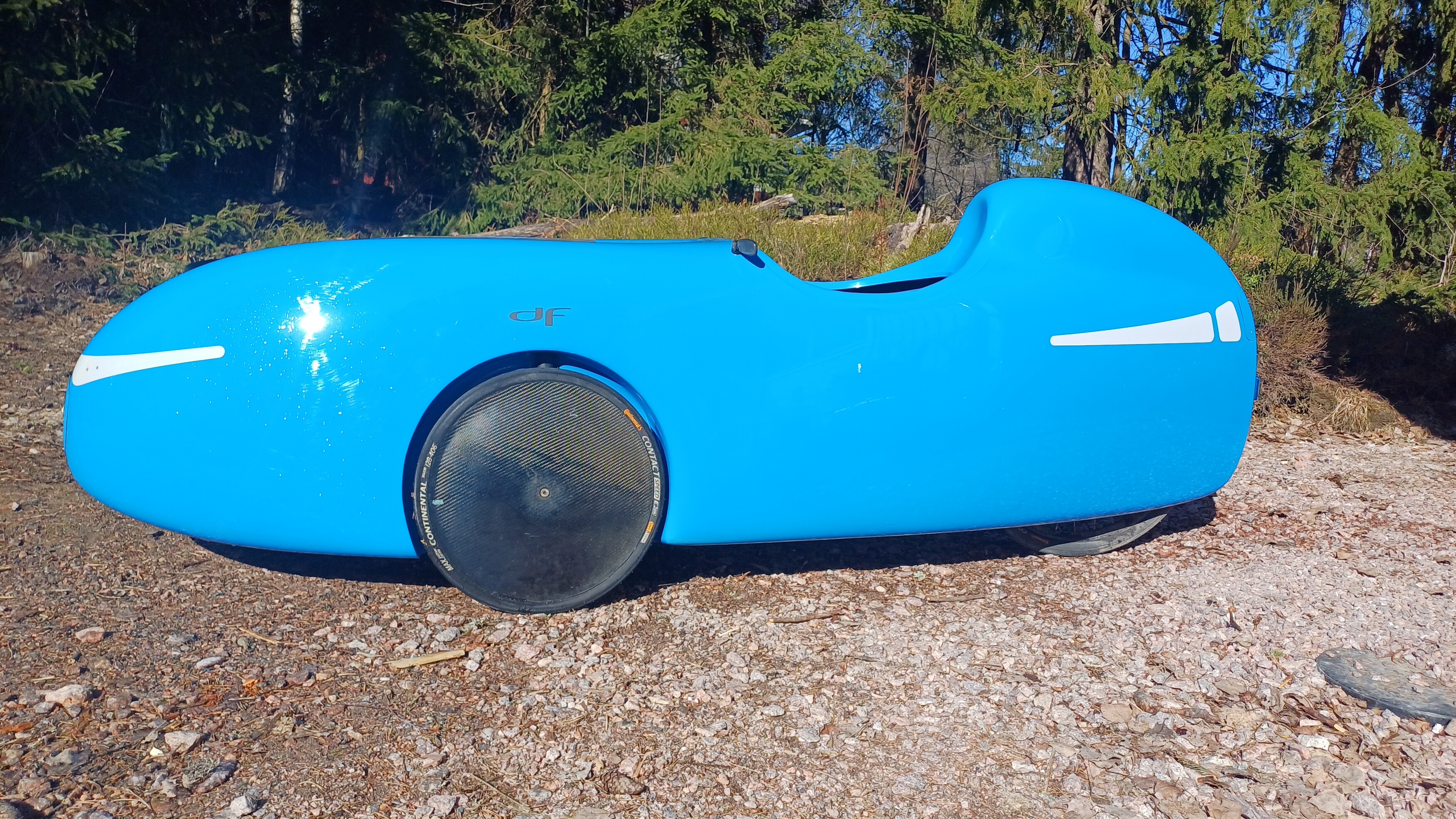 Minullahan on siis kaksi DF XL velomobiilia, kun viime keväänä onnistuin oranssi-valkoisen kinnerini särkemään ja hätäpäissäni sitten ostin tämän https://nojapyorafoorumi.fi/viewtopic.php?t=7282 rosterin sinisen DF XL:n jotta pääsisin nopeammin taas kinnerillä kulkemaan kun aikaa korjailuihin ei silloin ollut. Nyt olen vihdoin saanut oranssi-valkoisen korjauksen aluilleen ja luulen että sen noin kuukauden sisään voisin saada kuntoonkin, joten ajattelin, että voisin laittaa tämän sinisen nyt ikäänkuin ennakkomyyntiin, se voisi vapautua noin kuukauden sisään, jos kiinnostusta on.