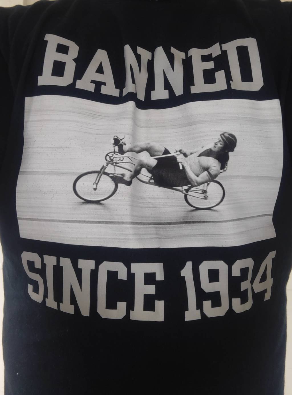 On 7/7/1933 Francis Faure brought recumbent bikes to the world's attention by setting the hour record. He rode a Mochet VeloCar and beat an hour record that had stood for 20 years (previously set by Oscar Egg on 8/18/1914). The new record and the radical design of the bike prompted the UCI to ban recumbent bikes (a ban which is still in place today) and restrict bicycle design for all future competitions.
