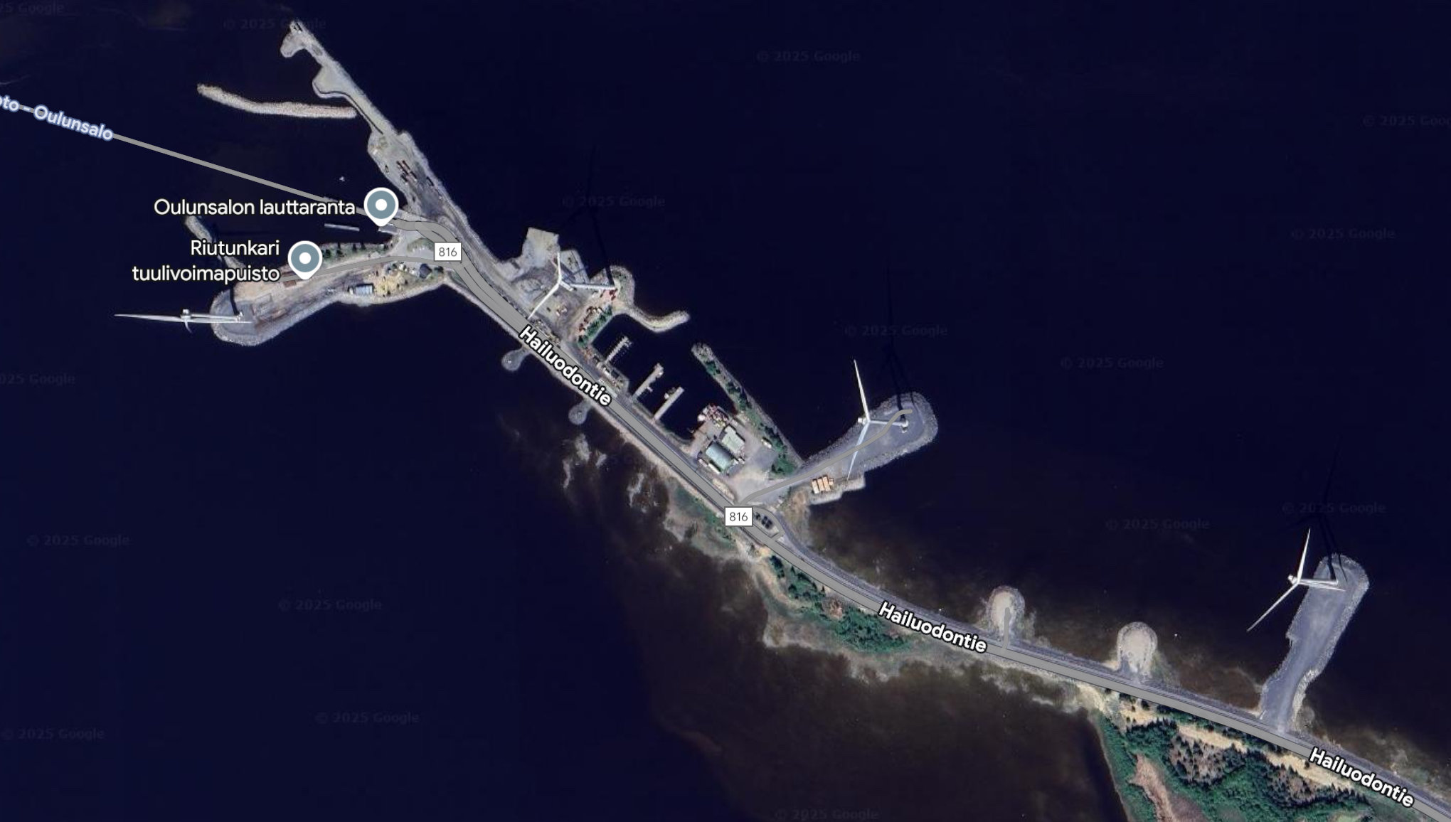 Tuulimyllyt pilaa maiseman ihan huolella. Tämä Hailuodon -mantereen puolen- lauttaranta on ollut mulle mieleinen rauhoittumispaikka. Varsinkin yöaikaan kun ei ole liikennettä. 350 asteen merinäkymä ja hyvät energiat. Olen yöpynytkin tuolla retkipakulla jo kauan ennen vanlife buumia.