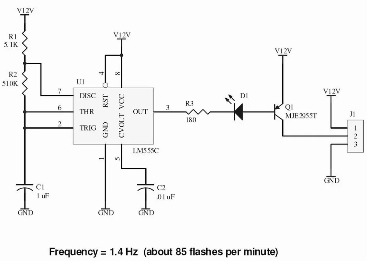 Kytkentänä on käytetty moottoripyörään tehtyä sovellus 555-piirillä.