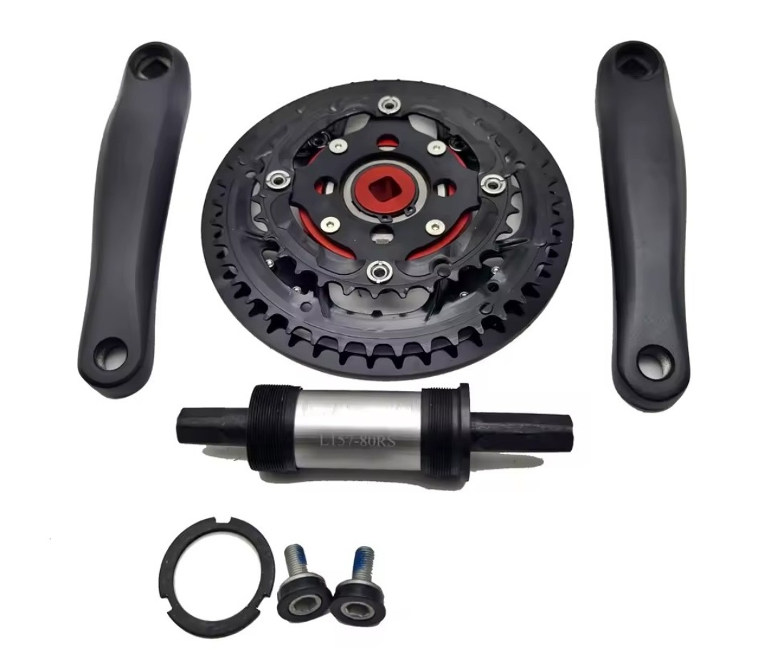 Hakusanoilla "freewheel crankset" tai "freewheel crankset for middrive" löytyy esimerkiksi.