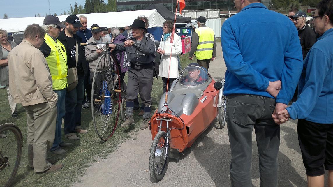 Mainitsin nojapyöräfoorumista ja ehdotin esim. osallistumista joku kerta nojapyöräkokoontumiseen Tampereella (sitten kun sellainen jälleen pidetään). Oletteko musti&siippa nähneet aiemmin tätä pyörää ja kuskia?