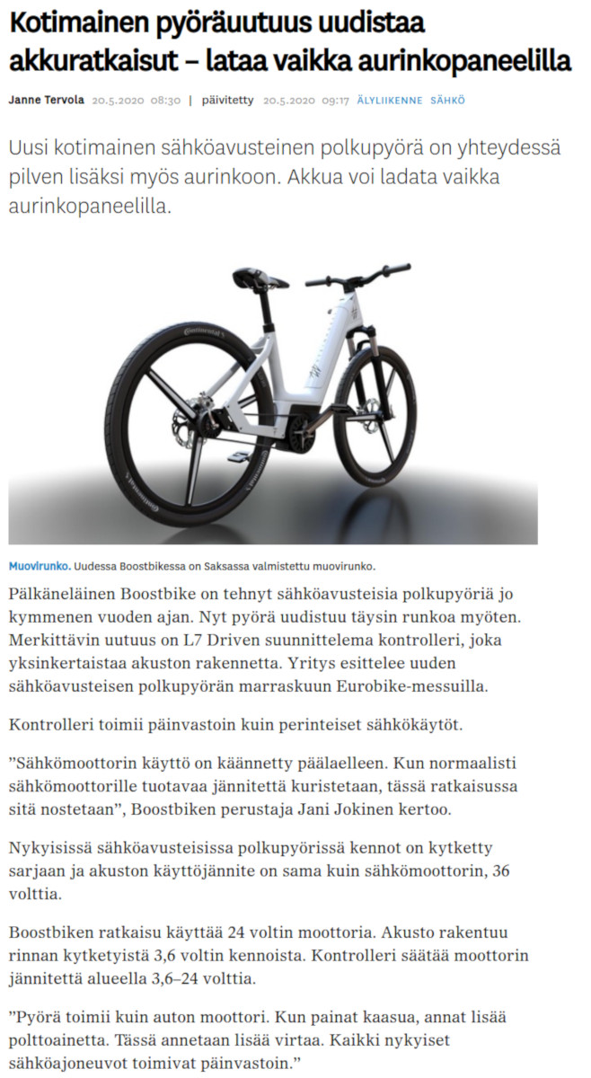 Ensimmäiseen kaupalliseen tuotteeseen L7 Driven kontrolleri ehtinee kuitenkin suomalaisen Boostbiken mukana.