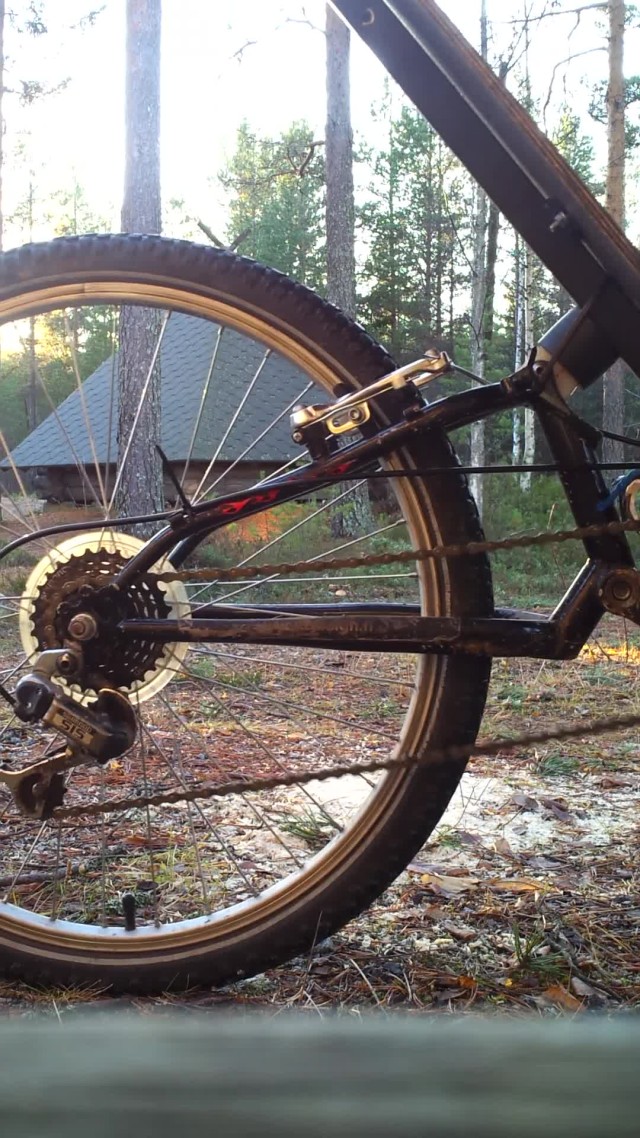 Hyvin tällä pysyy pystyssä. Ajoin hiekkamontun rinnettä ylös 1,6 metrin vaihteella renkaan luistaessa. Siinä ei vauhti päätä huimannut :lol: Ohjaustangolle kunnon rymyäminen asettaa uusia vaatimuksia. Tullut kyllä kokeiltua myös olosuhteissa joissa en usko muuten ajavani. Tässä aiemmin hyvin toiminut klemmarilla puristettu putki stemmin jatkona ei tunnu pysyvä paikoillaan vaikka kiristin sen niin tiukkaan kuin uskalsin.