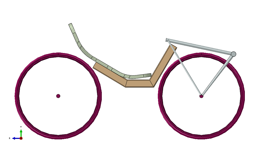 Varastossa on lojunut vuosia vanha pösö, josta saisi pienellä vaivalla "valmiin" etukolmion .... jarru, vaihteet ihan kaikki osat. Ongelmaksi jää miten siihen saa nivelen siten että se kestää. Jos tuon saisi jotenkin pelittämään niin takapään duunaaminen olisi "piece of cake".