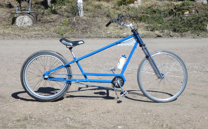 Ensimmäisessä chopperissani kokeilin tavallista marketin jousitettua mummiskan satulaa, mutta yllättäen itse tehty vaneerinen "penkki" on mukavempi.
