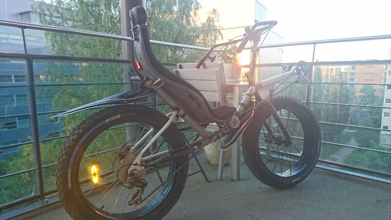 Hyvin se tuossa toimi tosiaan.. kärri myös selvisi perille vaikka vähän hoitamatonta tietä ja jalankulkijoiden oikoreittejä matkalta löytyikin. Heti tuli mieleen että pitäisihän kärrissäkin olla läskirenkaat - ei kuitenkaan taida löytyä kuin 55mm big appleja tuohon vanteelle niin saa jäädä harha-ajatukseksi Kuva