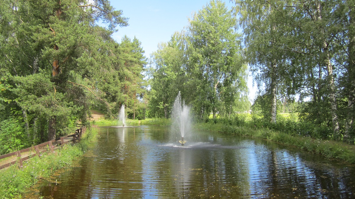 Kurkikaivo ja hieno puisto.