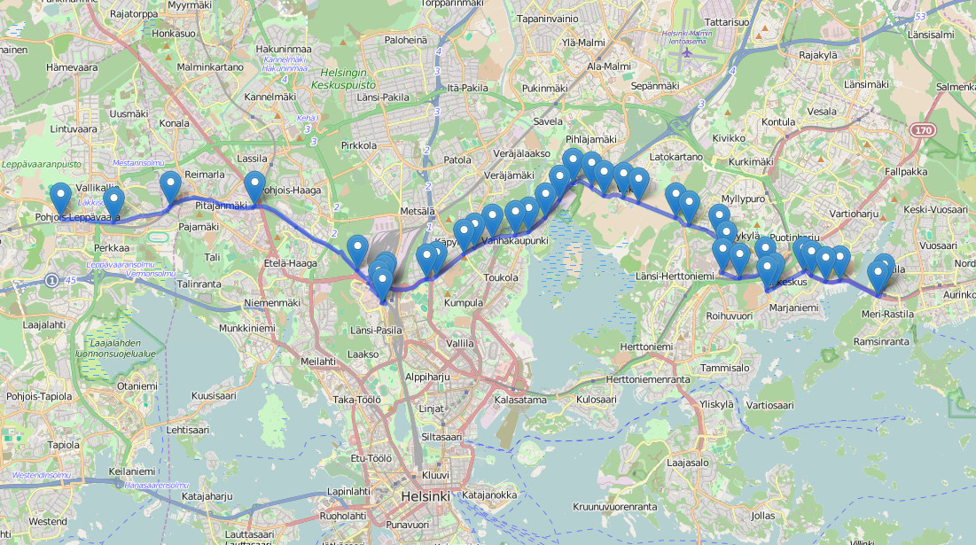 Esim. Leppävaarassa,Vallikalliossa ja Vihdintien jälkeisen pysäkin jälkeen sellainen taas löytyy.