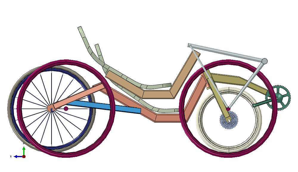 Varastossa on lojunut vuosia vanha pösö, josta saisi pienellä vaivalla "valmiin" etukolmion .... jarru, vaihteet ihan kaikki osat. Ongelmaksi jää miten siihen saa nivelen siten että se kestää. Jos tuon saisi jotenkin pelittämään niin takapään duunaaminen olisi "piece of cake".