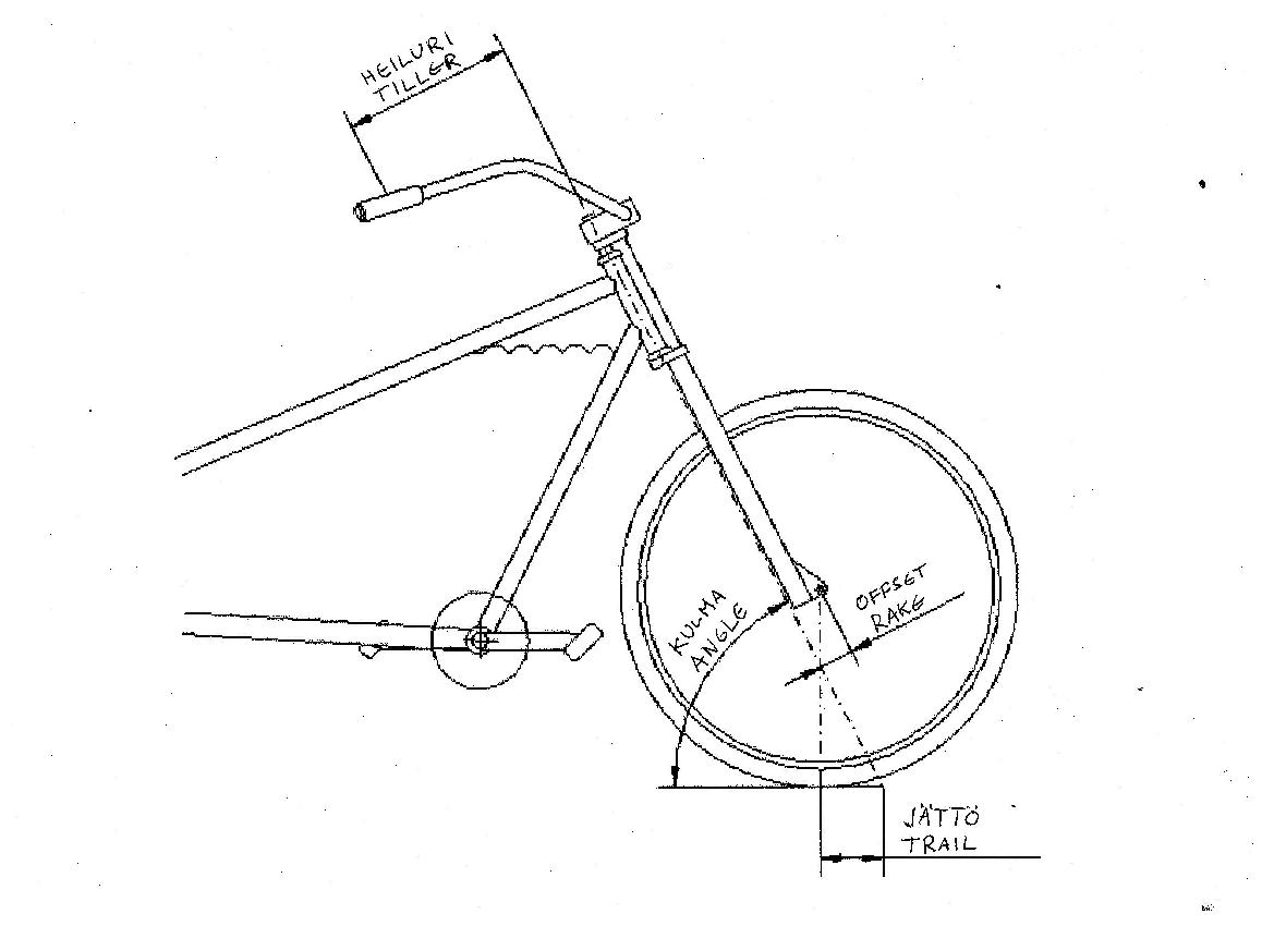 Negatiivinen jättöhän vaan pahentaa asiaa :shock: Kääntyvän etupään painopiste tulee entistä kauemmas ohjausakselin etu/yläpuolelle. Samoin maakontakti ei pyri liikkeessä oikeisemaan keulaa vaan kaatamaan sen.
