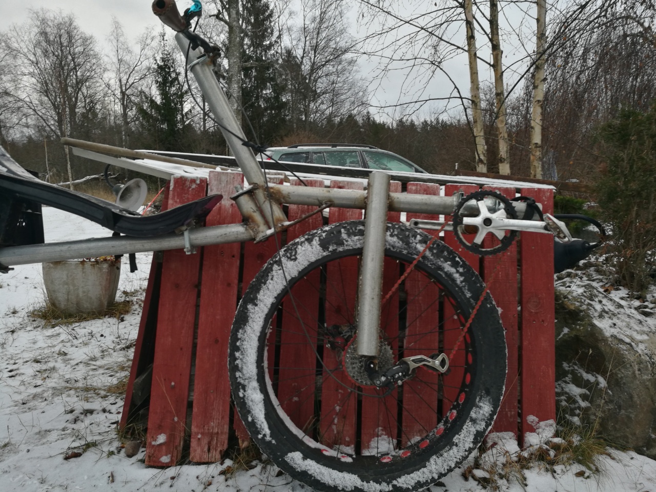 Siinä oman tehtaan uusin tekele ja mbb-keulan kehitysversio. Seuraava versio tulee omaan käyttöön ja tuo rungon mutka jäänee kokonaan pois ja jos toimii, eli yletän ajamaan, ni mihin sitä rungon mutkaa tarvittiinkaan - normaalikasvusten immeisten pyörissä?