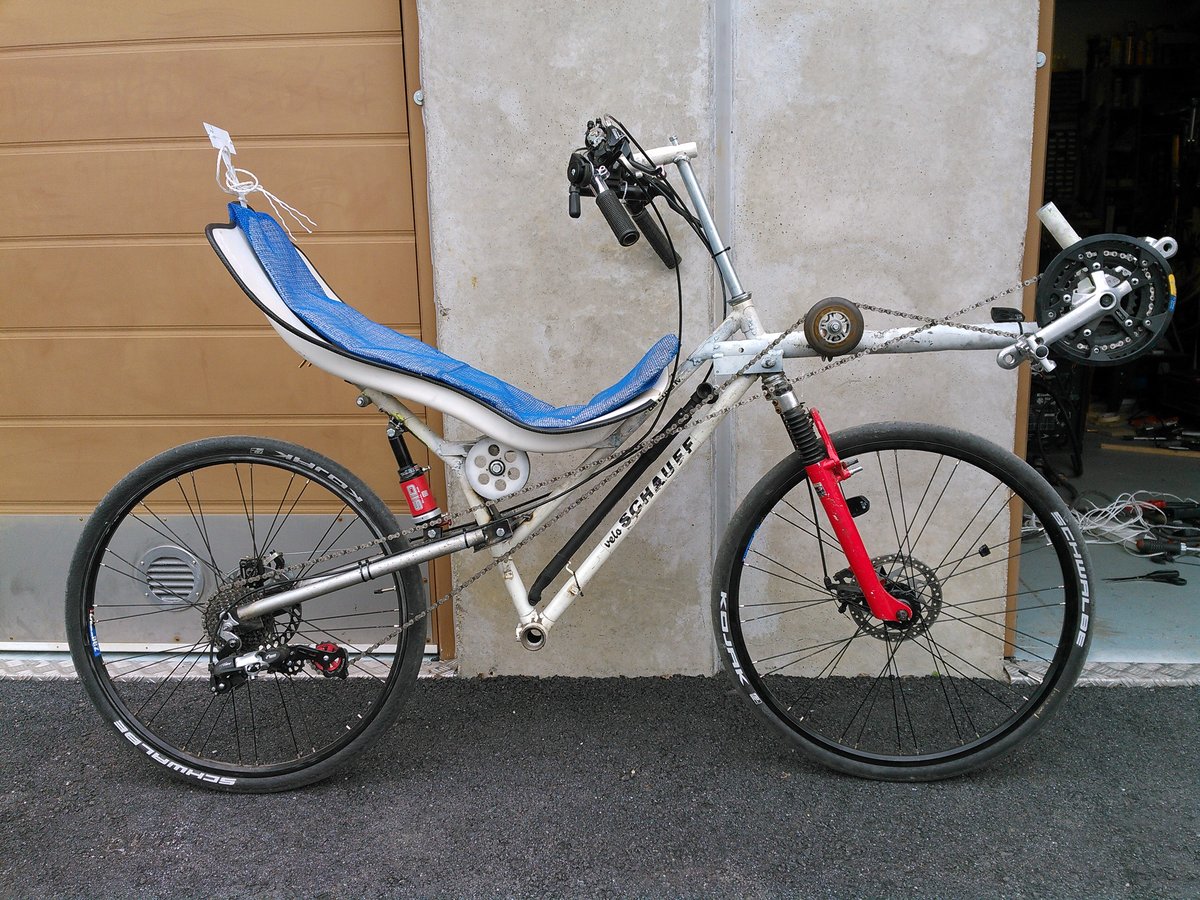 Sen hokasin että nykyisellä kampikeskiö-penkkiasemoinnilla takajousto lisää emäputken takakallistumaa. Nykyäänkin ilman käsiä ajaminen ei onnaa, haukkaa heti. En anna sen haitata, runkoa en ala venyttämään.