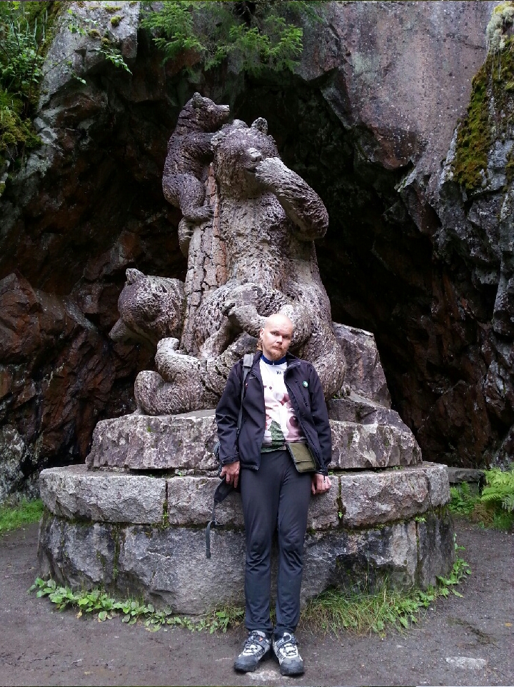 Berliininmunkkikahvit nautittiin viereisessä kahvilassa ja käytiin karhuluolassa, metsäpolkuja pitkin palailimme parkkipaikalle. Ilma oli sen verran kostea, että jo ajatus pyöräilystä toi hien pintaa. Nättiä syherötietä ajeltiin takaisin rantapolulle ja suuntana oli Taidemuseo, ennen sitä oli kuitenkin hienkuivailutauko kunnes sadekuuro yllätti ja hilppastiin museolle.