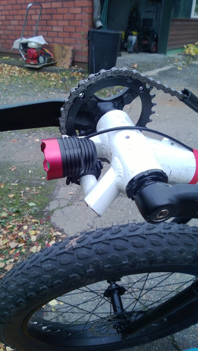 Tänään illlalla kerkesi taas pari tuntia askarrella. Nyt on etupuomi kohillaan (suurinpiirtein, katotaan kun saa pehmusteen ja lukkopolkimet kiinni). Tarakkaan hitsasin lätkän johon tulee takavalo kiinni. joku kiinalainen teholedi 2,86€ http://eud.dx.com/product/bicycle-bike- ... hAdGcvtmko Eteen kans ihan kohtuuhintainen (19,57€) 900-lumenin lamppu http://eud.dx.com/product/t6-xml-t6-3-m ... hAdZsvtmko (tällainen pikku mainos, pimeys yllättää iltaisin :mrgreen: )