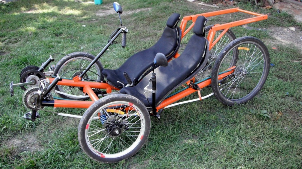 Tosi matalan ajokin voi vissiin unohtaa. Ei millään mahdu kahta polkijaa eturenkaiden väliin.