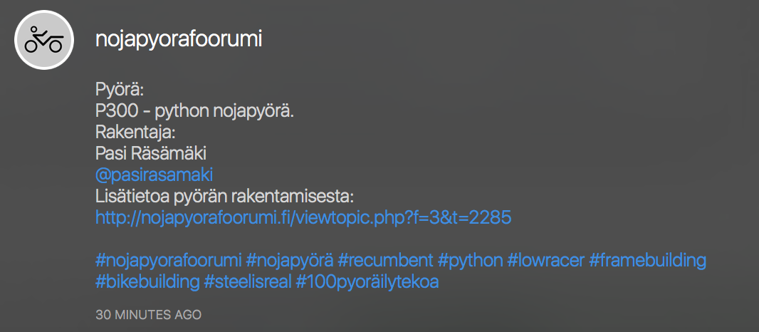 Sitten ideointia lisää = julkaistaanko samasta pyörästä useampia kuvia pötköön esim. muutoksia ja rakenteluvaiheen kuvia. Idishän tässä on se että nyt julkaistaan luonnollisesti kuva per päivä tai pyörä per päivä tahtia noita kuvia.