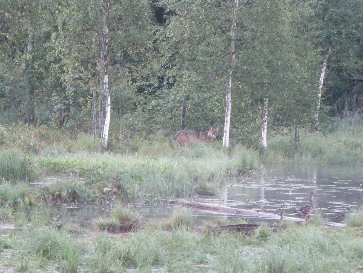 …mutta tuli takaisin meidän puolelle rantaa ja toivoin, että hyviä kuvia Saila saisi. Harmaasta isommasta sudesta ei oikein saanut kun valoa ei ollut tarpeeksi.
