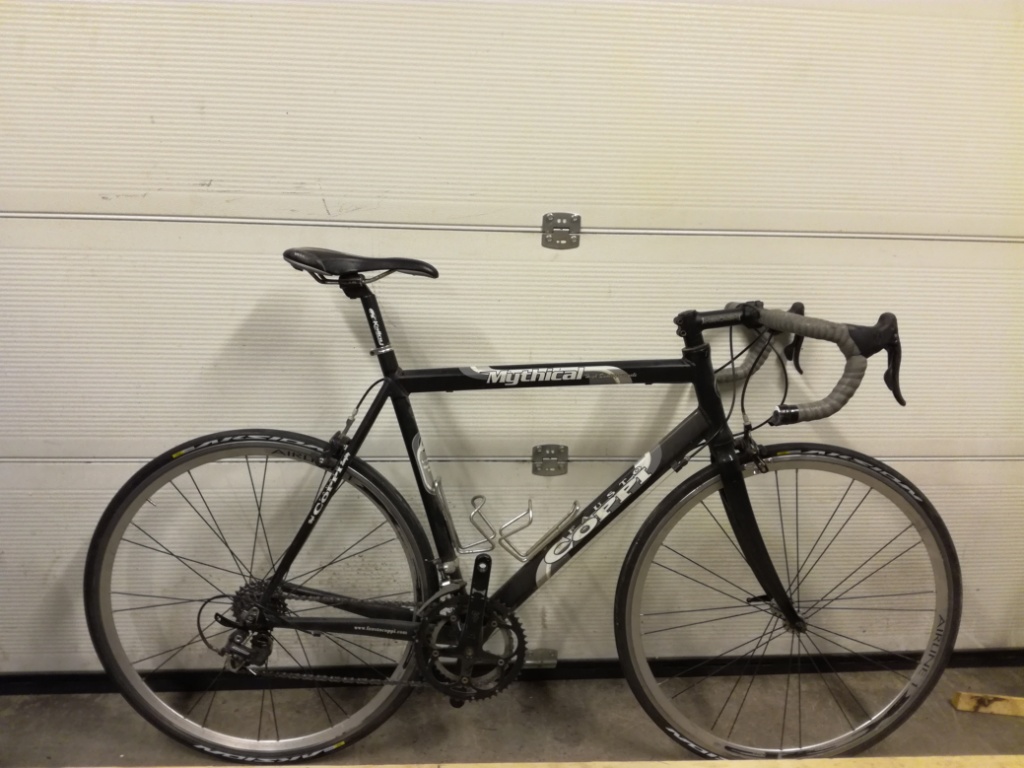 Projekti jatkuu, takavetoisena. Donorista otan kaikki osat. Kuvat näyttävät miten pystärille yleensä käy tällä foorumilla tuo on vanha halpis alumiinikilpapyöräni. Donori painoi hieman yli 10kg ja poisrälläköidyt rungonpalat 800g.