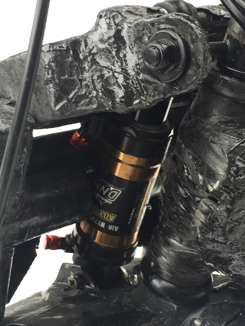 Ennen kuin heittäydyt ajamaan alamäkiajoa tällä haarukalla, tarkista tuon nuolen osoittaman paikan kestävyys.