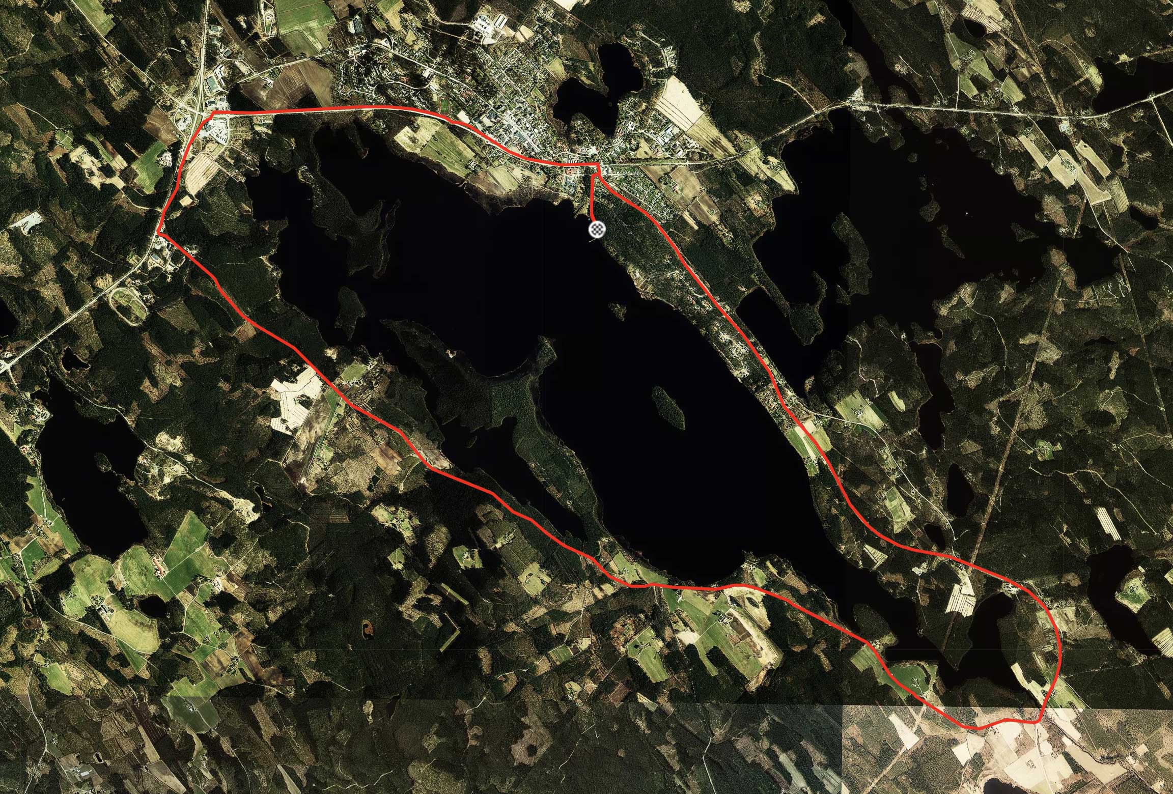 Kettulan n. 20 kilsan lenkki kiertää Jukajärven. Maalipaikkana tässä keskustan uimaranta.