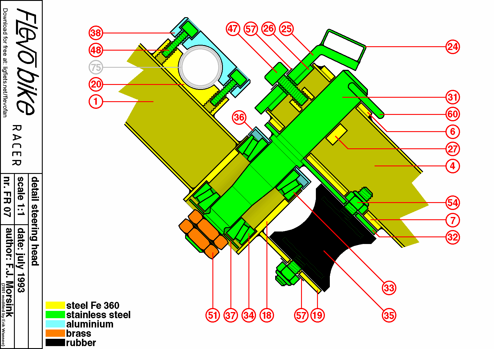 Flevon ohjauskumi on keventämässä loivaohjauskulmaisen pyörän etupäätä kallistuneena. Se on täysin ajettava ilman kumia, mutta silloin etupäätä tarvitsee kannatella käännöksissä jaloilla. Itse en tykännyt siitä niin päädyin pyyttoniin.