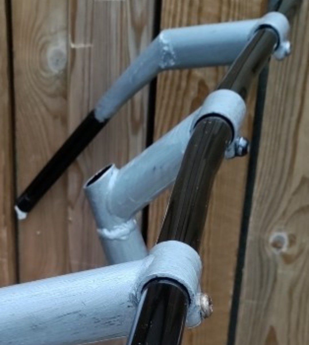 ...Poikittain menee normaali suora tanko, siinä on kiinni nousukahvat ja nousukahvoihin on hitsattu puolikkaat suorasta tangosta...