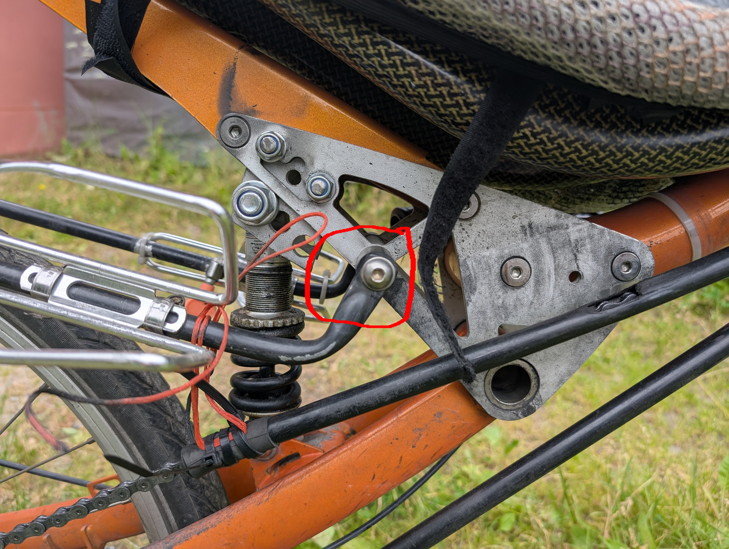 Toinen ongelma on tarakan kiinnike. Nytkin isolla kuormalla pienimmällä vaihteella (isoimmalla takarattaalla) ketju nojaa tarakan kiinnikkeeseen.