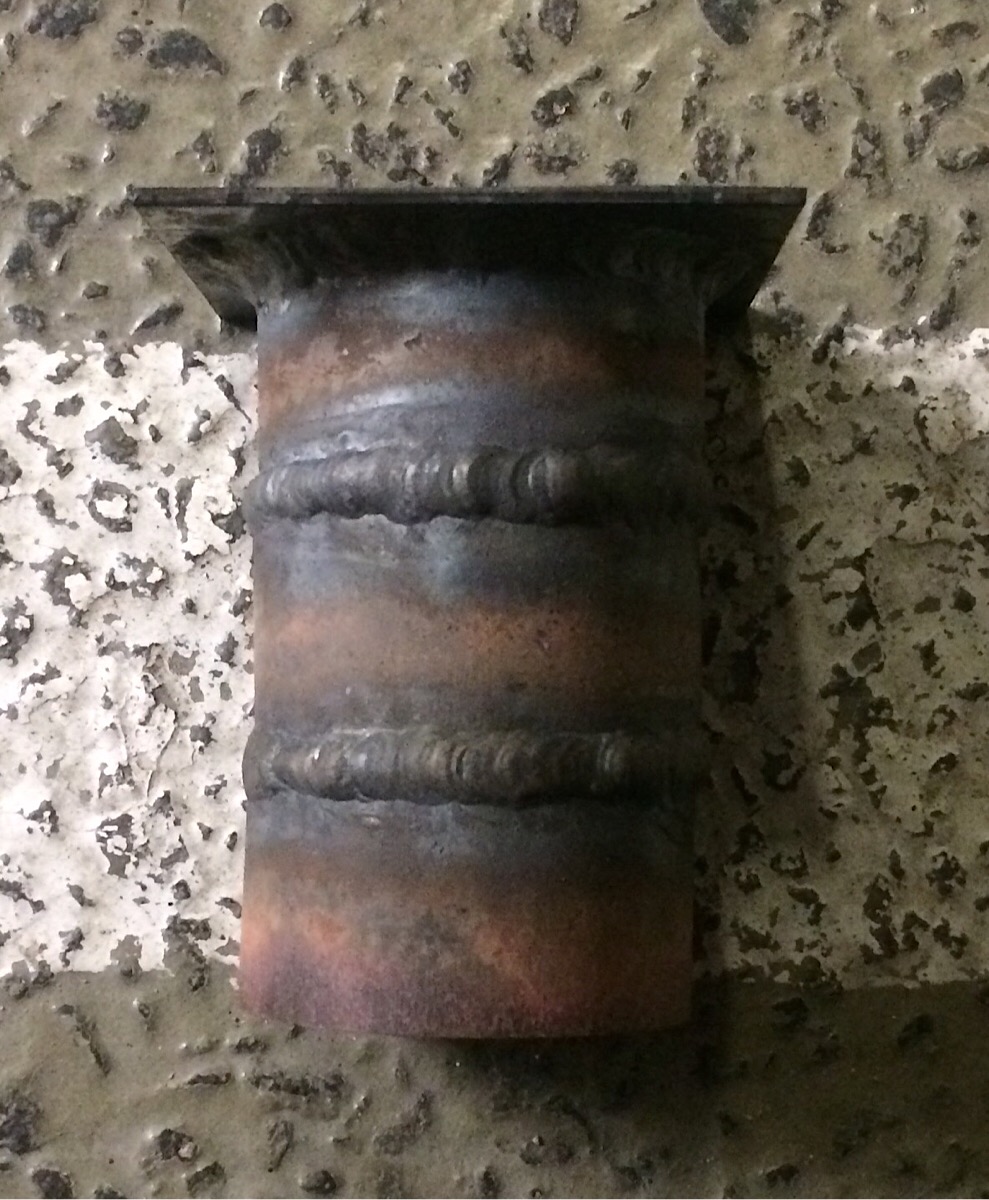 Olet ilmeisesti kuvassa takana olevan osan hitsannut "kuppia kävelyttämällä". Keraamikuppi on jättänyt sahanaarmun, joka paljastaa kävelytyksen.
