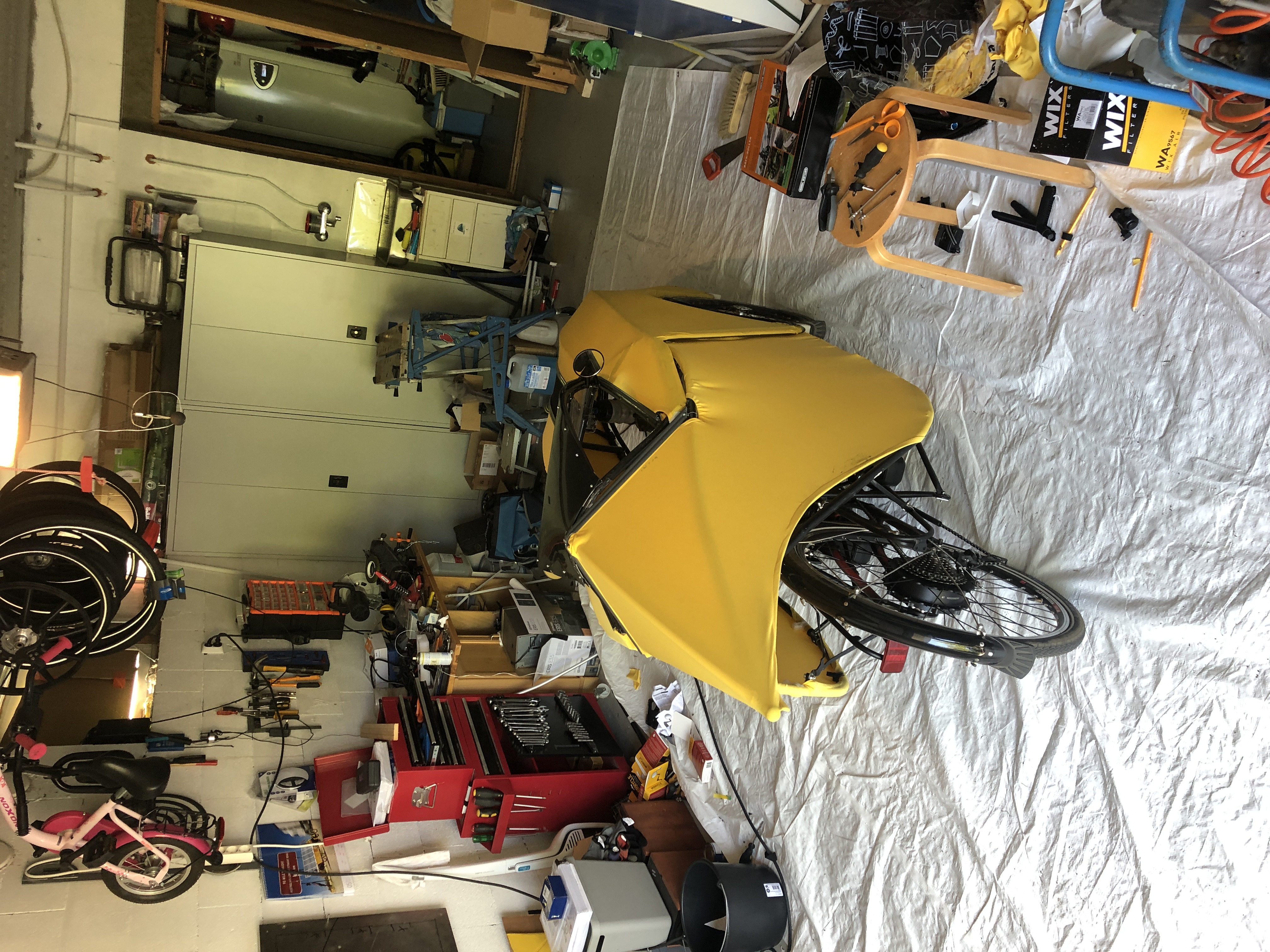 Tuli tätä aihetta lukiessa mieleen että voisiko triken päälle tehdä vähän samaan tyyliin esim. vedenpitävästä telttakankaasta helposti irroitettavan sadesuojan, ikään kuin teltassa on ulkoteltta, runkona voisi hyödyntää telttakeppejä, kevyt, pieneen tilaan menevä ja nopea asentaa sateen yllättäessä.