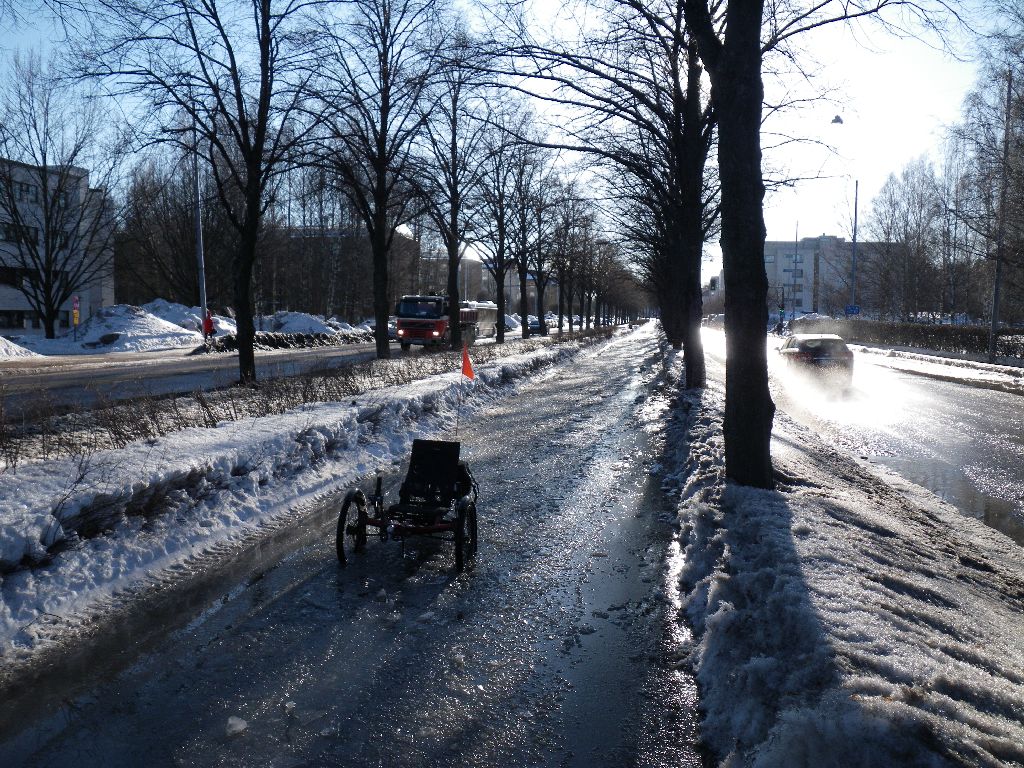 Nyt on ihan pakko laittaa kuva tännekin kun talvikilometrikisassa jäin odottamaan sitä mainitsemaasi kevättä ja että saa tahkota kilometrejä kuivalla asvaltilla. Ei oo näkyny...