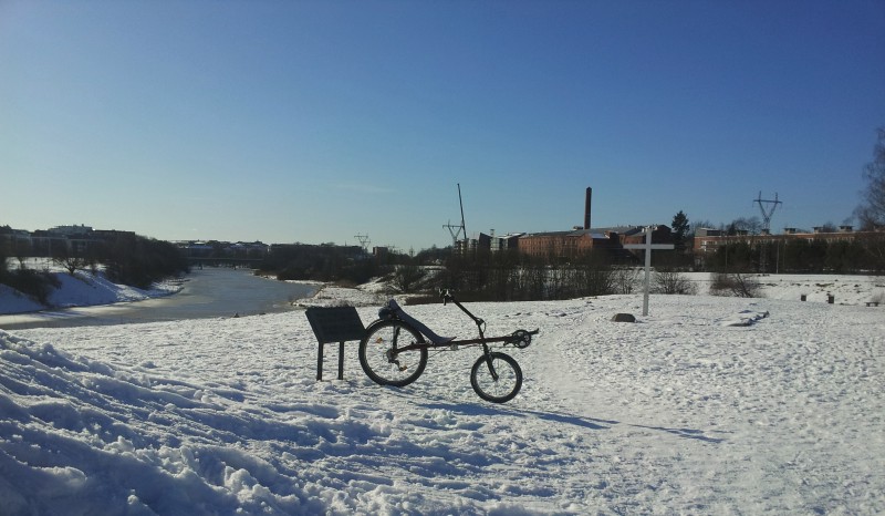 Tie oli tosi liukas, mutta pyörällä pääsi kuitenkin paljon