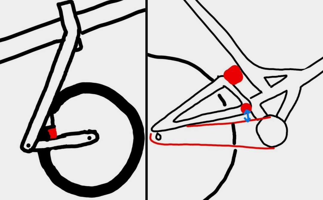 Ajattelenko nyt oikein, että takana ketjun pitää mennä hieman nivelpisteen alapuolelta, että ketjuvoima ja kiihdytyksen aiheuttama perän kyykkääminen pyrkivät kumoamaan toisensa?
