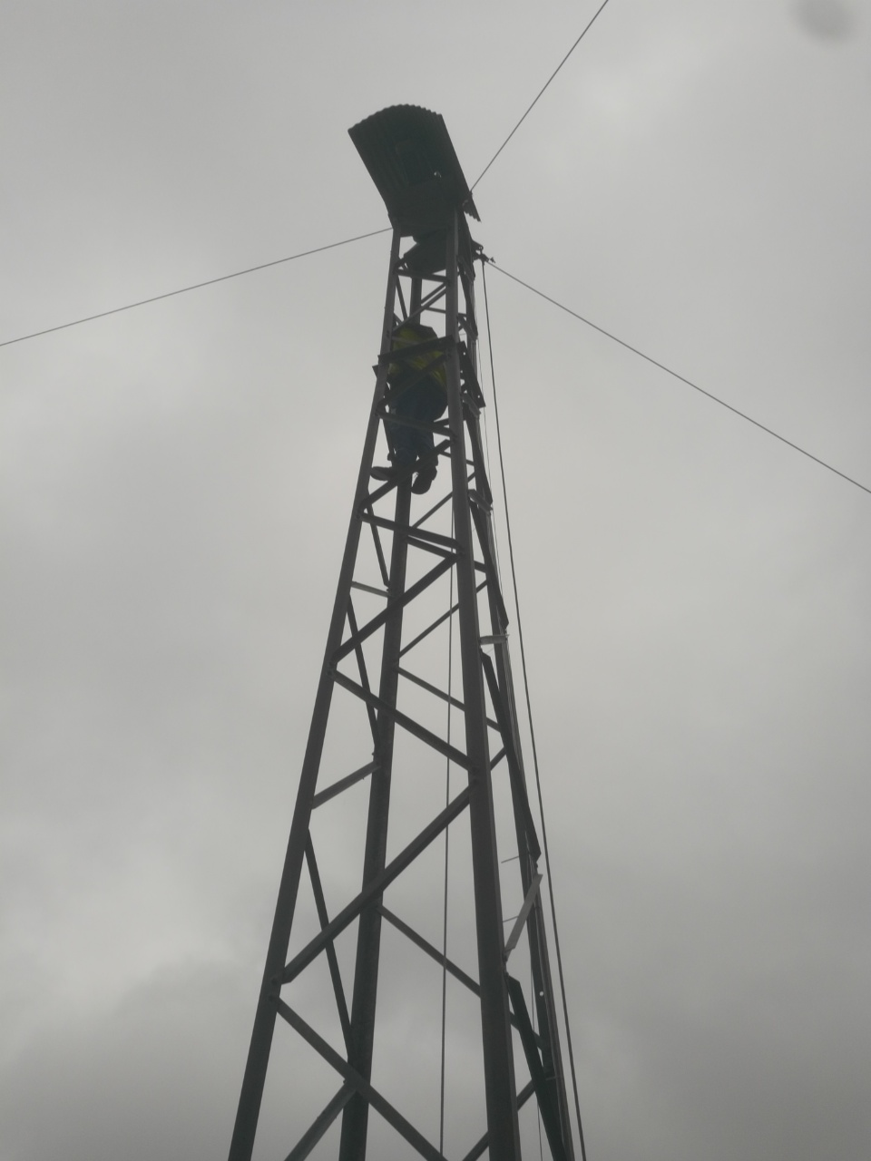 Kiristysvaijeri (10mm) saatiin tänään paikoilleen, sitä voi säädellä tuolla ketjutaljalla. Pari harusta molemmissa päissä. Ehkä huomenna vetovaijerin (8mm) asennus.