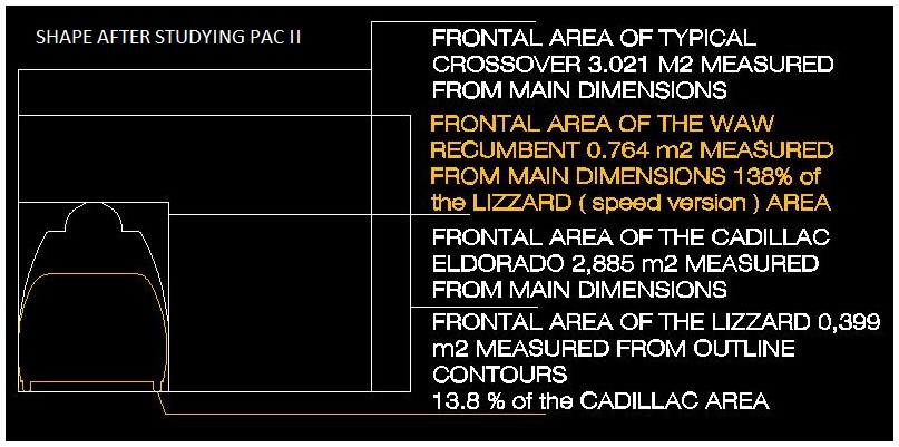 Upeahan tuo on PAC II ...siitä ei pääse yli eikä ympäri. Lähestyminen asiaan samankaltainen NLF profiilit tutkittu..Lizziessä vaan ei tarvi tehdä pyörille koteloita kun koko ja perusmuoto erillainen...tuon PAC II otsa alle puolet tästä ( liekö pyöräkoteloita laskettu ollenkaan ? )...koko taitaa johtua hennon naisen koosta jolle se on suunniteltu ???