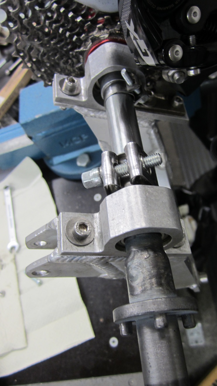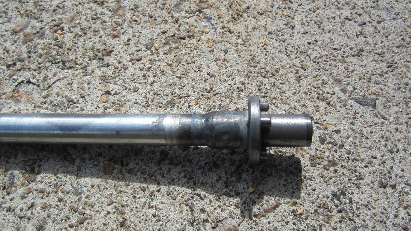 Holkin läpi porattiin 4 kpl 5 mm reikiä, joiden kohdalta saatiin hitsattua "pisteet" kiinni akseliin pelkän holkin pään hitsaamisen lisäksi. Valmistaja käyttää vastaavaa tapaa itsekin tuoreempien QW-yksilöiden akseleissa.