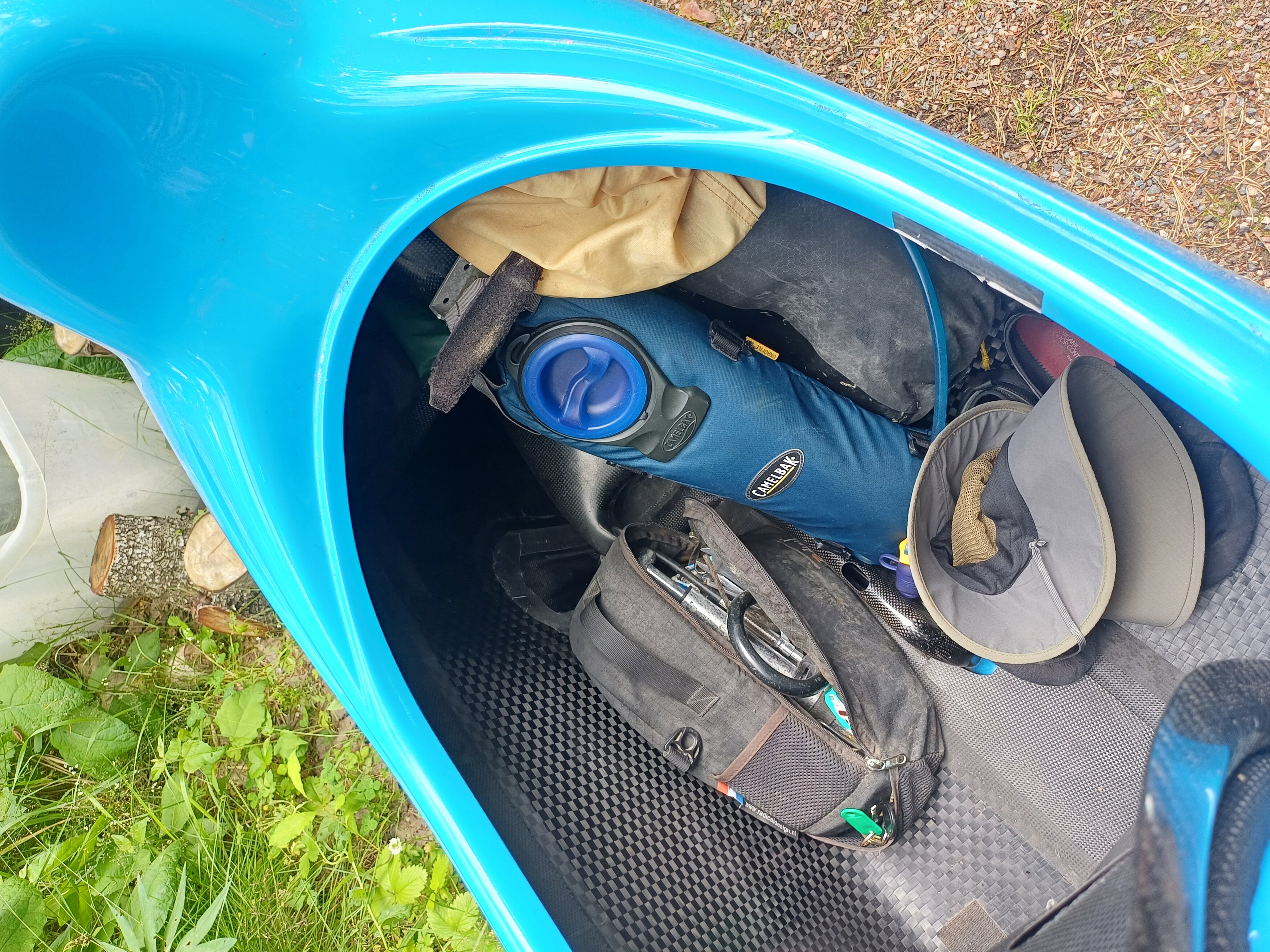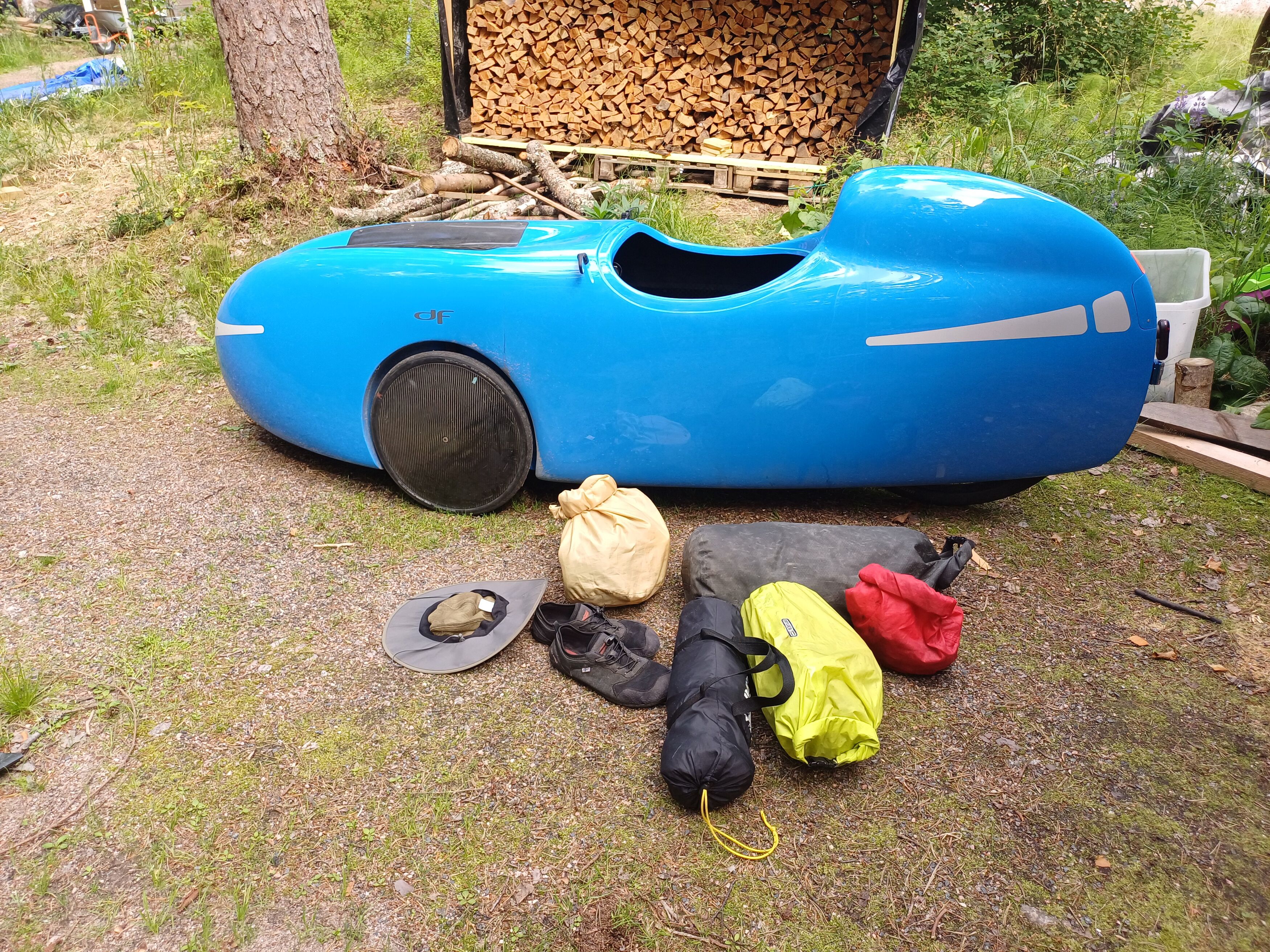 Reitti teki vähän tepposet, olin sen brouter.de:llä ja sen velomobiiliprofiililla tehnyt, mutta en kiireessä ajatuksella käynyt koko pätkää läpi, niin perskeles sehän laittoin minut sorateille kurvailemaan. Ihan hyväkuntosia oli kyllä, mutta sateen jäljiltä pehmeitä ja kinneri kulki kuin täi tervassa :) No ei siinä, maisemat oli monipuolisemmat kuin isommilla teillä.