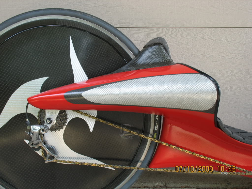 Tämä tulkinta antaa mielenkiintoisia mahdollisuuksia, varsinkin hiilikuiturakenteille. Takapäähän saa katteen, kun muotoilee takahaarukan M1:n mallilla vaikka vähän isommaksikin ja keulaan "nuolimallisella" pyörien tuennalla saisi etukatteenkin.