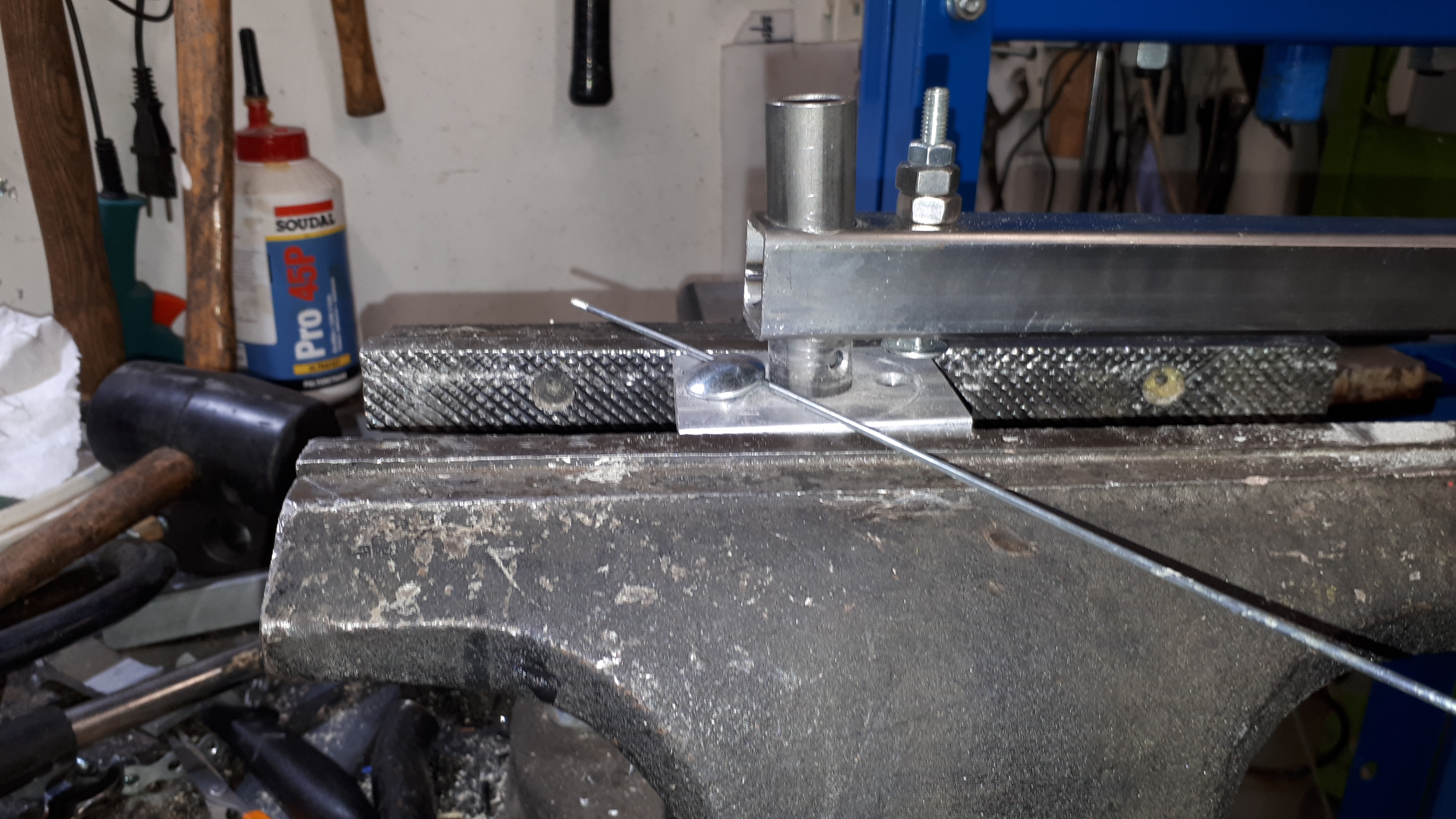 Pyörän pinnat on lujaa tavaraa, taivuttelu haastavampaa. Vaatisi näköjään ainakin ohuemman akseliputken taivuttimeen. Mutta jos hitsauspuikko ajaa asiansa, niin mitä sitä muuttamaan.