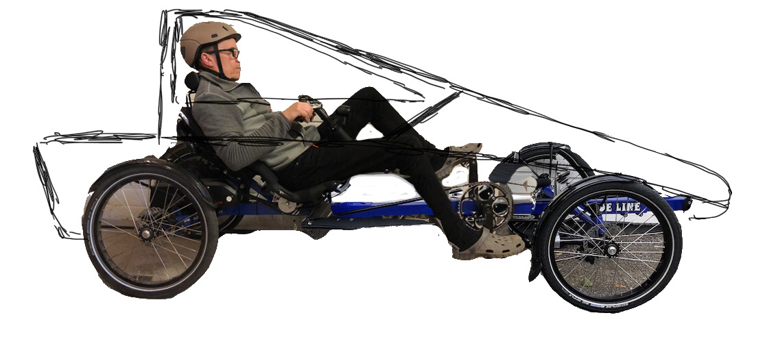 Etuosasta tulee sen verran kapea että polkimien kohdalla jalat just mahtuu. Dragster. Silloin etupyörät mahtuu kunnolla kääntymään. Mutta kyllä, samaa ajattelin, että kyllä eteenkin jotain saa mahtumaan. Niin ja tass se ajatus, että voin käytt osassa tuulilasia oikeaa lasia, jotta voin laittaa tuulilasinpyyhkimen. Piirtelen kohta lisää.