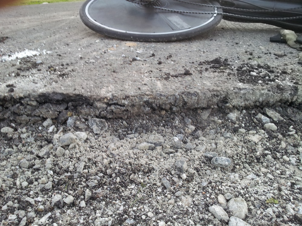 Aivan turvallista ei ole ajoradankaan pinnan osalta. Asfaltin kulumisen takia tehtävien osittaisten pinnoitustöiden takia piennarviivan vieressä -joskus rotvallin- risteyksissä ja siltojen läheisyydessä on usein vinoja uuden ja vanhan asfaltin reunoja, jotka kiilaavat pyöräilijän rotvallin ja asfaltin reunan väliin. Pahimmillaan siellä kapeassa raossa on vielä -kaupungissa melko usein- syöksykaivon kansi.