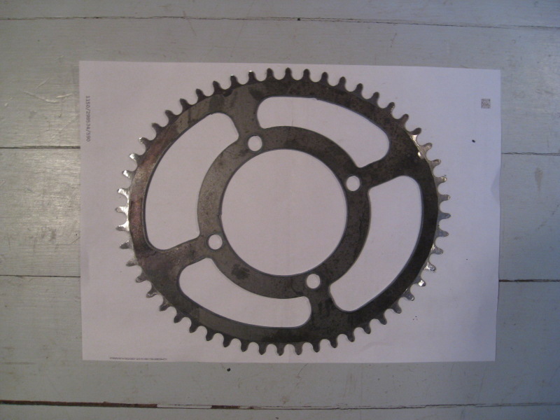 Ihan puhtaasta mielenkiinnosta väkästelin uuden n.17%(!) ovaalin rattaan nojakkiin. Hammasluvuksi valikoitui tarkoituksella sama, kuin etukasetin keskimmäisessä lehdessä jo on. Mul olis tarkotus vaihtaa toi ovaali kasetin pienimmän rieskan tilalle, niin pääsee testaamaan mikä vaikutus menemiseen on kun vaihtaa pyöreeltä lehdeltä ovaalille hammasluvun kuitenkaan muuttumatta..
