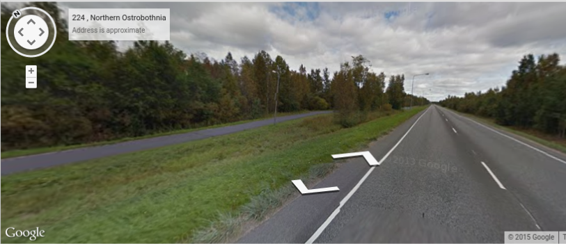 Tässä siis testipätkä. Ajan Kälviän kirkonkylän läpi törkeästi ajoradalla vaikka vieressä kulkisi ihan käyttökelpoinen kevyen liikenteen väylä. Mutta näin kaikki muutkin maantiepyöräilijät tekee.