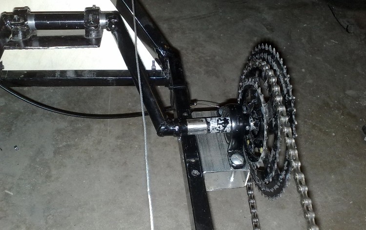 Asentaisin myös vetävään ketjuun putken, joka estäisi kejun pomppimista, mutta sen kiinnittäminen on ongelmallinen, kun putken pitää olla liikkuva molemmista päistään.