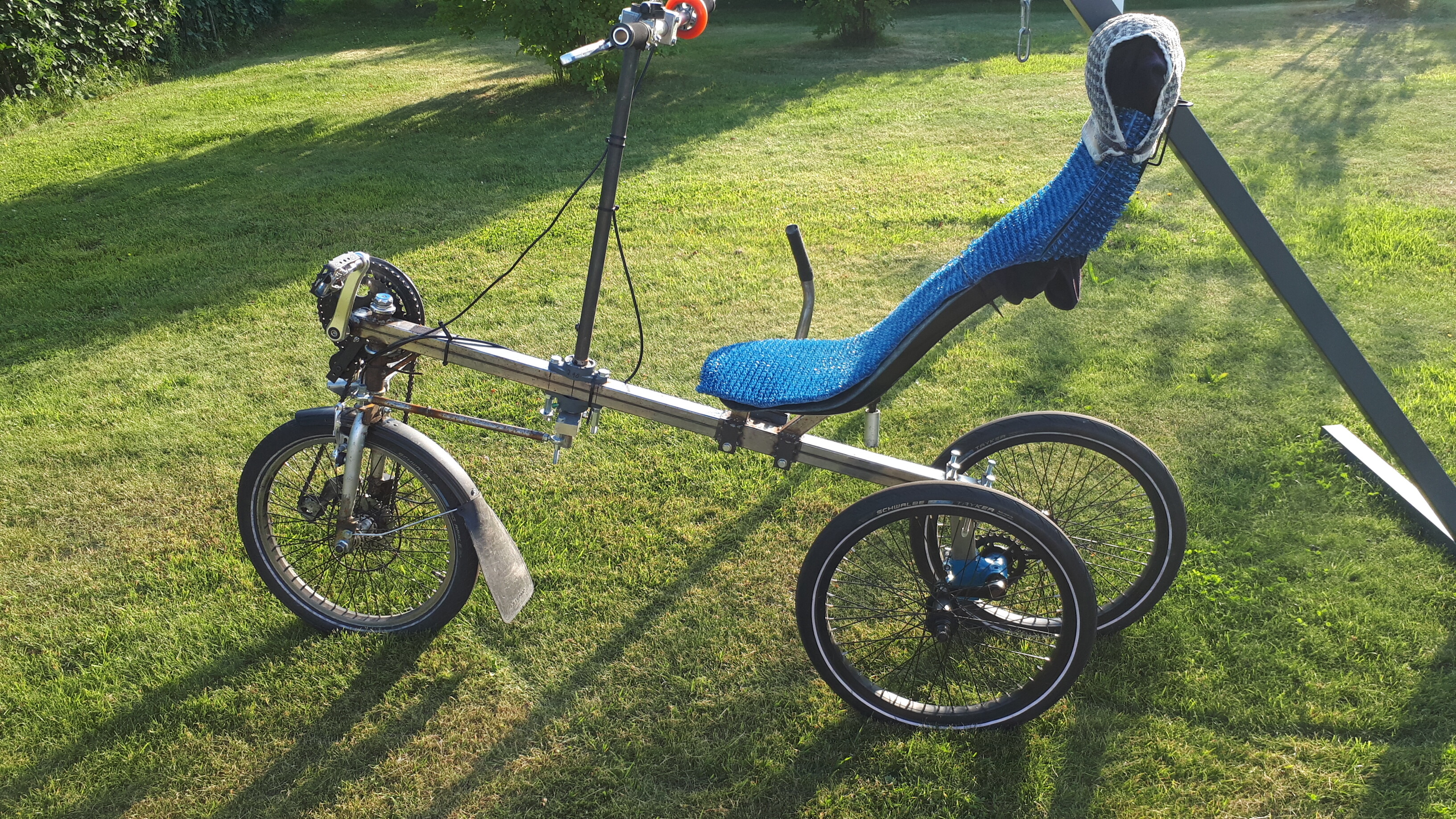 Vielä jos sais aikaiseksi laittaa jarrusatulan puristamaan taka-akselin kampiratasta, niin sais kallistuksen lukon, jolloin vois pysähtyä risteykseen jalat polkimilla.