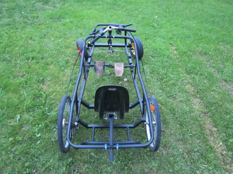 Tämä vaikuttaa kätevältä. Mä olin tuohon kolmipyöräiseen miettinyt että tekisi "etäohjauksen" = ohjaustanko taaemmas ja sieltä tangot eteen - mutta tällä systeemillä taitaa saada sen kätsymmin tehtyä. Kiitos ja kumarrus.